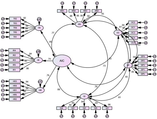A new framework (refer to Figure 3) has been developed, incorporating a second-order reflective construct known as AIC. The subdimensions of AIC are TR, IR, and HR. The sub-dimensions are examined by assessing their factor loads on AIC and their level of importance.