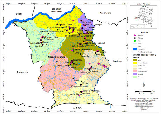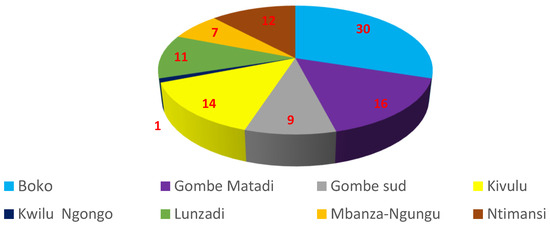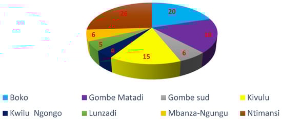 The Democratic Republic of the Congo (DRC) is divided into 145 administrative territories. This study was conducted in one of the ten territories that comprise the Kongo Central province. The study was conducted in the seven sectors of the Mbanza-Ngungu territory, which has its capital in the city of Mbanza-Ngungu. It should be noted that the city of Mbanza-Ngungu is a discrete entity, distinct from the Boko sector. This territory is situated 154 km away from the city of Kinshasa. Its coordinates are 5°16′ South, 14°51′ East. The climate is classified as Aw4 (tropical savannas) according to the Köppen classification system [10]. Fifty-five villages were visited, spread across 24 groupings. The study was conducted over a three-month period, from July to September 2023.