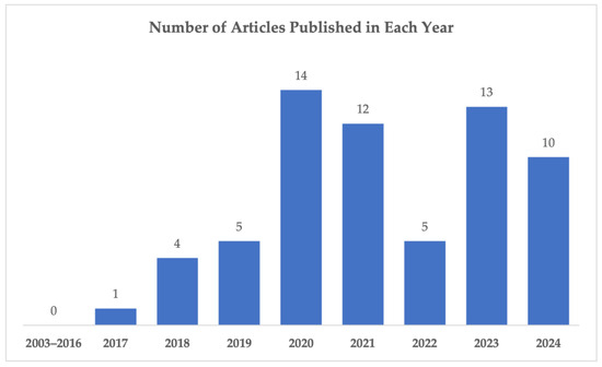 This section addresses RQ1 by analyzing and reporting the selected articles’ publication years, journals, and countries, along with the keyword co-occurrence network, presenting the current state of the DCL research.