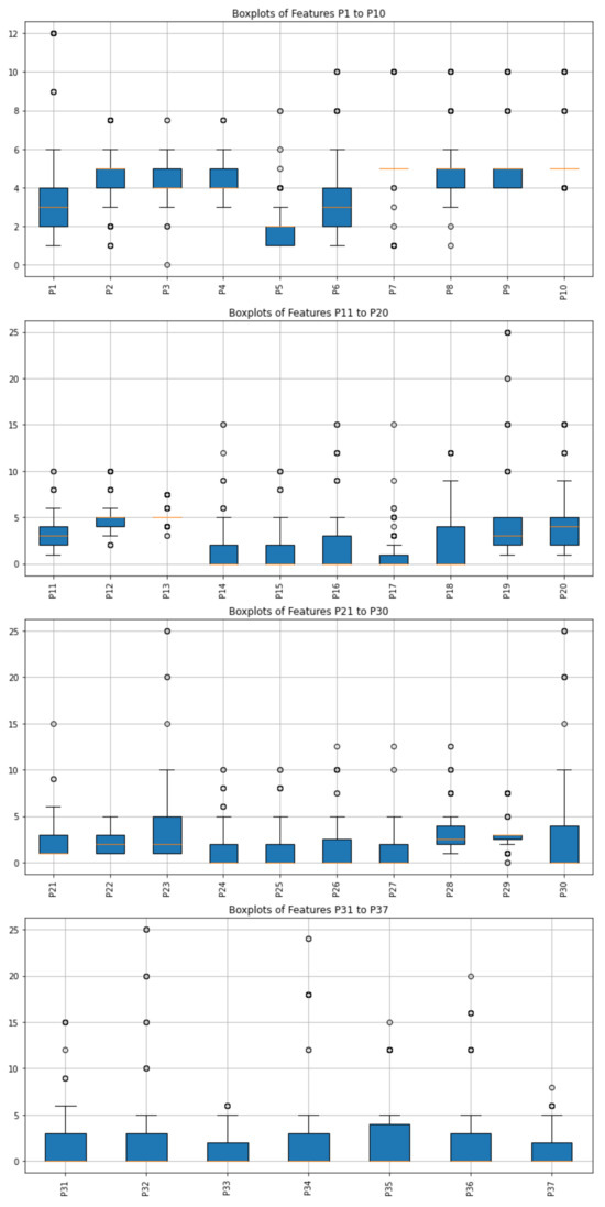 Notably, some cities present in the test dataset were not included in the training dataset. To maintain consistency and accuracy in model predictions, these new cities were excluded from the test dataset. An analysis of the data involved visualizing distributions and skewness through density and boxplots, which revealed significant outliers and skewness as shown in Figure 1 and Figure 2. The circles in Figure 1 represent the outliers in the dataset and the area within the blue box represents the range through which the feature values extend. The orange line represents the median of each parameter [80]. This boxplot was used to interpret the spread of the feature values among the data. This analysis guided the decision to apply a log transformation to the revenue variable, thereby stabilizing variance and improving the model’s learning efficiency. Feature engineering also included the extraction of seasonal information from the date column to capture temporal patterns, further enriching the dataset.