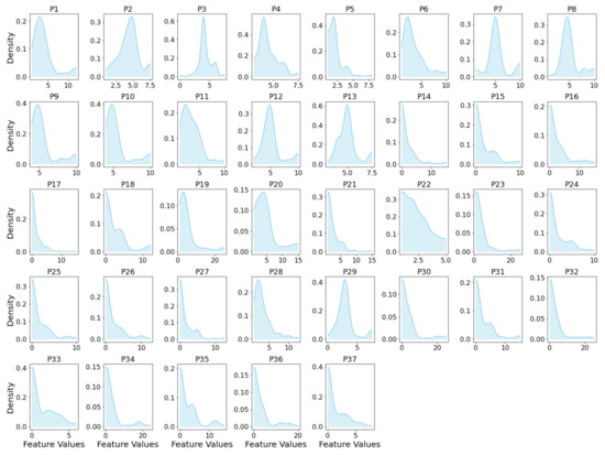 Density kde plot of P1–P37 parameters.
