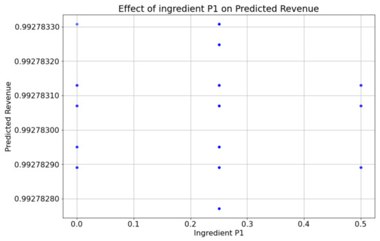 Ingredient P1 effect on revenue with scatterplot.