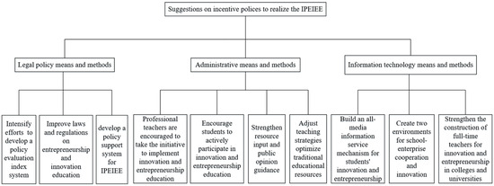 In short, there are many studies that focus on the necessity and application of the IPEIEE. However, few efforts have been made to address the reluctance of many professionals to leave their original specialties to specialize in entrepreneurship education [35]. Faced with this situation, it is necessary for us to carry out institutional innovation. On the one hand, we should establish the corresponding incentive mechanism; on the other hand, we need to raise the profile of entrepreneurship education and make it a key part of college education.