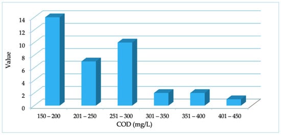 The COD of wastewater fluctuated a great deal, relatively speaking (160–432 mg/L). However, the common influent COD value was 160–288 mg/L (Figure 4. The ASG reactor had a COD concentration of 80 mg/L on the 11th day and reached stability in the 32–64 mg/L range, equivalent to a treatment efficiency of 64–86% (Figure 5). With the FASAG reactor, the COD concentration after treatment decreased to 144 mg/L on the first day of operation and gradually decreased to 80 mg/L on the ninth day. Sample analysis results from the 10th to 16th day showed that COD concentration after treatment was stable in the range of 48–80 mg/L (Figure 4). This highest efficiency is equivalent to the research results of Dang et al. when applying loofah sponges as bio-carriers in an integrated fixed-film activated sludge system [16]. However, on days 17 and 18, COD suddenly increased to 160 mg/L. The increase in COD values is due to chironomid mosquitoes that are often present in wastewater treatment systems or lagoons and lay eggs. Eggs develop into red worm larvae [17]. Red worms do not live separately but stick together in patches (Figure 6). Their cycle of growth and development then continues until they turn into pupae, float to the surface, and develop into adult mosquitoes. The presence of red worms that fed on sludge flocs caused the microorganism density to decrease; the sludge flocs became loose and peeled off from the biofilm carrier materials, leading to reduced COD and nitrogen treatment efficiency. The air pump was turned off for two days to stop providing oxygen, inhibiting their growth and development [18]. After that, the model operated normally again, and the COD treatment efficiency reached a stable level of 82% until the end of the experiment, relatively higher than in the study of Dohdoh et al. [19].