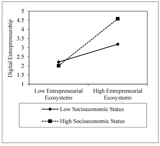 Interaction plot of entrepreneurial ecosystems and socioeconomic status regarding digital entrepreneurship.