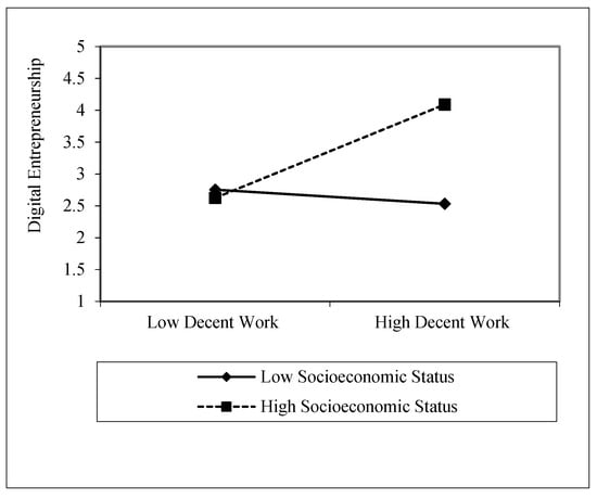 Socioeconomic status positively moderates the relationship between decent work and digital entrepreneurship.