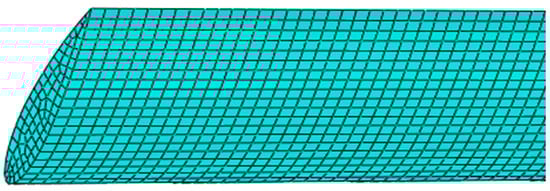 The finite element method (FEM) is a numerical technique that involves modeling a structure and dividing it into smaller elements, known as a mesh [30]. After meshing, interactions are made on the elements at certain points (nodes). Subsequent calculations are performed at each node using predetermined mathematical formulas. An example of meshing can be seen in Figure 5.
