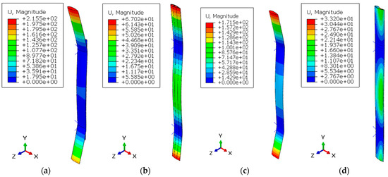 Displacement contours for (a) C-1, (b) C-2, (c) C-3, and (d) C-4.
