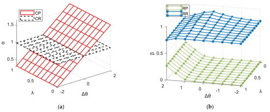 The optimal transfer pricing coefficients of the headquarters under cost-plus and resale-price strategies are presented in Figure 5. In Figure 5a, it is evident that when the retailer bears exchange rate risk, the cost-plus coefficient remains unaffected by exchange rate fluctuations and reference-dependent psychology. Conversely, the cost-plus coefficient shows a positive correlation with positive changes in exchange rate risk when the purchaser bears exchange rate risk. This is due to the fact that positive exchange rate risk has a negative impact on the profit of the purchaser, leading to a higher cost-plus factor being set by headquarters to balance costs and income between subsidiaries. However, when the retailer bears exchange rate risk, its risks are mitigated through purchase prices, resulting in less intervention from headquarters.