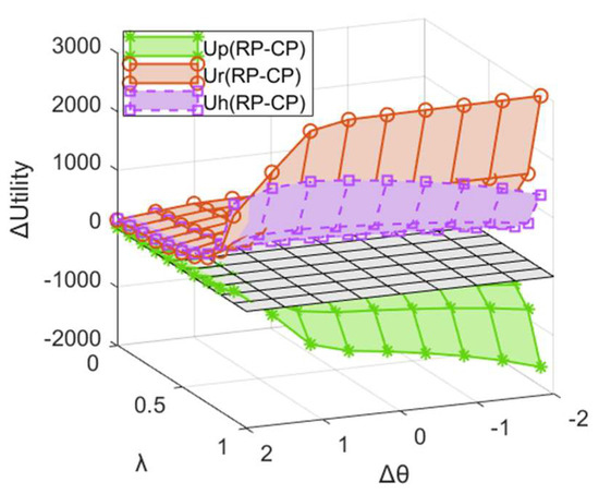 Under the cost-plus strategy, the purchase price is closely related to the exchange rate and the reference-dependent psychology of the retailer. The purchase price under the cost-plus strategy is significantly influenced by exchange rates and reference-dependent psychology within the retailer. In contrast, the purchase price under the resale-price strategy is not affected by exchange rate fluctuations and reference-dependent psychology. This manifests as the overlap between the blue and green planes. Specifically, under the cost-plus strategy, when exchange rate fluctuation exceeds a reference value (), there is a higher exchange rate risk for purchase prices in the retailer. Conversely, when exchange rate fluctuation falls below (), there is a lower exchange rate risk for purchase prices. From the perspective of the reference-dependent coefficient, when the amount of exchange rate changes is high, the larger the reference dependence coefficient, the higher the purchase price; otherwise, the two have a negative relationship, and this rule is more obvious in the situation where the retailer bears the exchange rate risk.