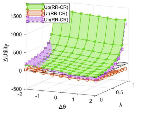 5.1. Equilibrium Strategy and Utility of Four Modes