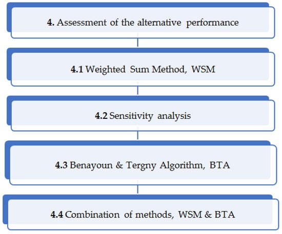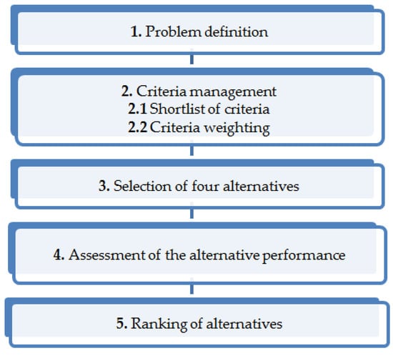 Alternatives are assessed according to a scoring scale {1 to 5}, with 1 being the worst and 5 the best possible score [7,25]. The details are in Table 3.
