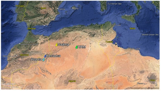 By comparing costs obtained with the model used in the System Advisor Model (SAM) software version 2023.12.17 [30] with those of the present economic model, a significant difference is observed; the “SAM” costs are 36% lower. The costs are as follows: Kenadsa (0.091 USD), Abadla (0.156 USD), Naâma (0.087 USD), HRM (0.087 USD). It would be interesting to delve further into analysing the disparities observed in electricity production costs, using more detailed economic models. Details of the formulas and data for the economic model using SAM are given in Appendix A.