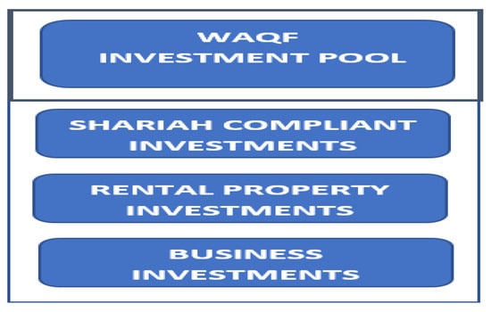 The waqf donation can be invested in the following (refer to Figure 2 and Figure 3 below): the cash fund can be invested in sharia-compliant investments. Movable and immovable properties can be leased out to receive rental income, while the corpus of the movable and immovable properties is maintained. Finally, the waqf business investment needs to be kept secure, while the profit earned can be used to serve the beneficiaries.