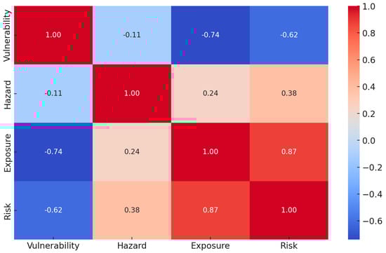 Correlation matrix among Vulnerability, Hazard, Exposure and Risk.