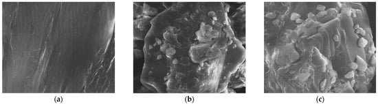 SEM images recorded for PS (a) and PS after pesticide adsorption (b,c).