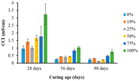Chloride conductivity index of concrete specimens.