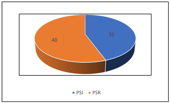 Out of the 72 studies examined, 32 focus on PSI, and 40 focus on PSR. See Figure 2.