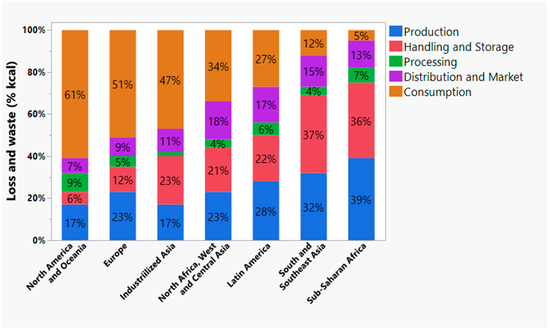 Global food loss and waste from farm to consumer by area. Modified from [1].
