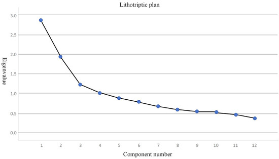 Factor gravel map (The blue circles represent the eigenvalues of each principal component).