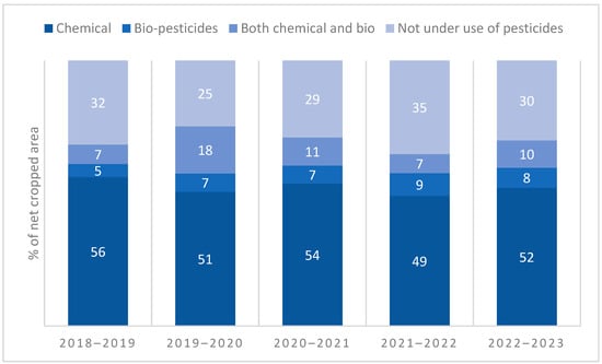 | State | Households Adopting Pest Control Measures (%) | Chemical Control (%) | Agro-Economic and Cultural Practices (%) | Mechanical Control (%) | Biological Control (%) | Other (%) | No Efforts (%) |