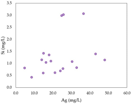 where is the covariance of silver and silicon concentrations in the leaching solution, and are the standard deviation of silver and silicon concentrations, respectively. A Pearson correlation index of 0.321 was achieved based on the results. This low correlation between the two elements of greatest interest is also visible in Figure 12.