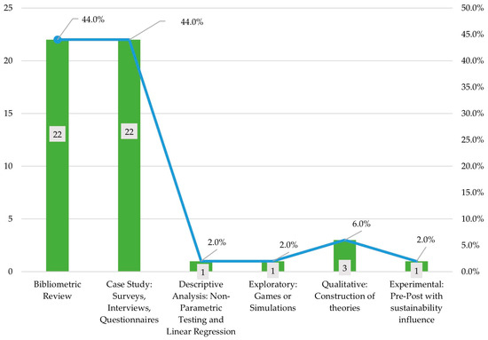 In addition, 2% of the papers were divided into descriptive, exploratory and experimental analyses. The descriptive study entitled “Education for sustainable development through business simulation games: An exploratory study of sustainability gamification and its effects on students’ learning outcomes” aimed to model and quantify the impact of universities’ dissemination of information on the Sustainable Development Goals on their overall scores in the Impact Rankings. In addition, it analyzed whether higher-ranked institutions had a significant relationship with different Sustainable Development Goals compared to lower-ranked institutions [42].