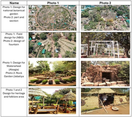 Around the world, there are roughly 2500 registered botanical gardens [29,30], and most of them are found in temperate climate environments. Botanical gardens are considered historical and heritage monuments and are reliable bodies that demonstrate the extent of people’s interest in plants and the extent and importance of plants to humans. They are considered a metaphor for human relationships with the environment surrounding them [40]. Many approaches have developed that focus on land, urban areas, and historic urban fabrics [6]. The various benefits and purposes of botanical gardens are emphasizing their roles in preserving plant genetic resources, providing botanical knowledge to scientists and the public, cultivating new plant varieties, conducting scientific research, maintaining herbaria and seed banks, and conserving genetic diversity. In Sudan, there exists a botanical garden in Khartoum State covering 11 acres, alongside gardens associated with agricultural colleges at universities. However, other states lack botanical gardens despite Sudan’s environmental diversity and vast territory. According to the BCGI inventory, only 98 botanical gardens are documented across Africa and the Indian Ocean regions [33]. Modern botanical gardens are crucial for addressing climate change and environmental crises by adapting to biological shifts caused by climate change, and for climate change research and new experiments on plant responses to climate change [41,42]. The botanical garden has many benefits for documentation, education, and research. In addition, green and recreational spaces in urban areas serve economic benefits from attracting tourists, hobbyists, and visitors to the area, to spiritual and psychological recovery and well-being, and opportunities to look at artificial lakes and rare flora and fauna. One example is from the Baikal region in Siberia, which preserves local customs, traditions, culture, and community identity [43]. Botanical gardens also provide us with plant diversity that provides humans with the basic needs of life in terms of food, housing, clothing, and treatment. Plants are the basic element of any ecosystem. They work to isolate carbon dioxide emitted by humans, stabilize the soil, facilitate drainage, and surface runoff, and reduce gases [44]. The relationship between plants and humans has been an interconnected and continuous relationship since the beginning of creation, characterized by resources, experience, botany, and the modern uses of plants in cognitive development, scientific research, and studying the relationship between humans and plants, as well as the conservation of plants in their natural habitats, in terms of both ecological and economical sustainability [30,45,46]. The ecosystem and biodiversity are under threat from humans, as is the case with the annual flower exhibition in the National Botanical Garden in Sudan. We find that the area of the botanical garden is 11 acres and receives visitors in huge numbers during the exhibition period. Due to the narrow paths, we find that the plants near the paths are severely affected. There are presentations on assets or habitat destruction or global climate change, for example at the New York Botanic Garden and Royal Botanic Gardens, Kew [47], that analyze and deconstruct the complex relationships between human societies and ecosystems [48]. Currently, botanic gardens and related institutions form an intricate global network that facilitates the exchange of knowledge, resources, and living plants. This plays a pivotal role in fostering sustainability where human and plant diversity intersect [25,49,50].