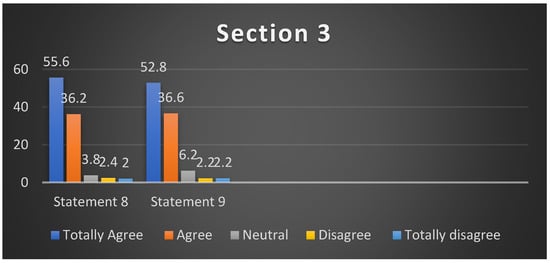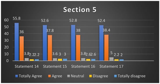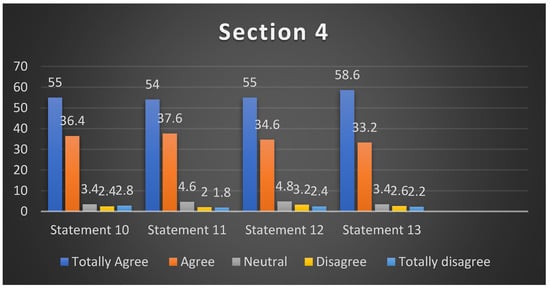 The design of the questionnaire was based on 20 questions and was created by the researchers to gather data. The questionnaire was designed to capture participants’ perceptions and experiences. The questionnaire was available in the English language and was administered using Google Forms. The questionnaire utilized a Likert scale to measure participants’ responses. The Likert scale consists of a series of statements related to different aspects, and participants were asked to indicate their level of agreement or disagreement on a 5-point scale: “totally Agree”, “Agree”, “Neutral”, “Disagree”, or “totally Disagree” (see Table 4). Care was taken to ensure that the questions were clear, relevant, and aligned with the research objectives. The questionnaire underwent a pilot testing phase to assess its reliability.