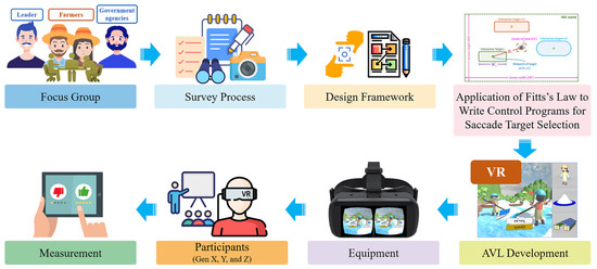 The process of developing the affordable virtual learning technology of sea salt farming across multigenerational users consists of eight processes: focus group, survey process, design framework, application of Fitts’ law to write control programs for saccade target selection, AVL development, equipment, participants, and measurement, as shown in Figure 1.
