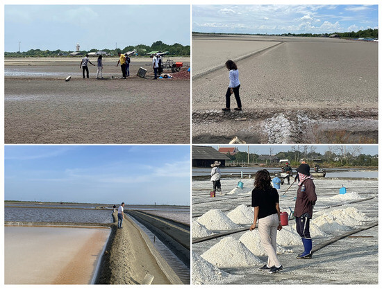 Most sea salt farming is processed in three provinces in the lower central region of Thailand, including Phetchaburi, Samut Sakhon, and Samut Songkhram. In particular, villagers in Samut Songkhram Province have been engaged in sea salt farming since ancient times. The wisdom of salt farming has been passed on continuously from generation to generation. The sea salt farming method uses natural methods that are local occupations appropriate to the area’s geographic conditions and people’s way of life. This results in obtaining natural products from the local area that have not been processed and are friendly to the environment and consumers. However, the expansion of the economic sector, industry, tourism, and the expansion of urban communities have affected areas that used to farm salt in Samut Songkhram Province. As a result, the area for sea salt farming has begun to decrease continuously. In the beginning, villagers had a career in sea salt farming. There is an area for sea salt farming in Bang Kaeo Subdistrict, Samut Songkhram Province, which is approximately 7296 rai (approximately 11.67 square kilometers) [1]. However, in 2022, only 53 households were still farming salt in an area of 2532 rai [2]. It resulted in losing the championship of sea salt farming at rank number one in the past and dropping to number three in Thailand. Making a career in salt farming requires patience and hard work to obtain salt. This causes the next generation to change to other occupations, such as working in industrial plants or, worst of all, selling sea salt farming land to obtain a lump sum of money. Suppose there is no dissemination of information to preserve the knowledge and wisdom of sea salt farming of previous generations, which has existed for a long time. In that case, the sea salt farming profession will quickly disappear. The disappearance of the main occupation in the subdistrict is considered a big problem that will affect the wisdom of sea salt farming, which has been passed down for a long time. Therefore, if sea salt farming is not disseminated, the wisdom of knowledge will not be preserved. This will significantly impact the amount of salt produced and its effect on food ingredients and other salt-containing products. Furthermore, it will result in no more salt fields as a natural coastal disaster protection line. Another meaningful impact is the destruction of Thailand’s overall coastal ecosystem.