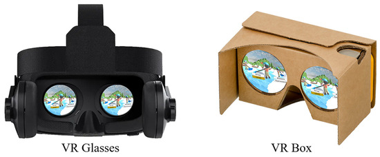The AVL application developed in this project is compatible with smartphones running the Android operating system version 11 or higher or API level 30 or higher. It requires approximately 100 megabytes (MB) of storage space for installation and requires external speakers or wired/wireless headphones for audio playback. For optimal virtual reality usage, efficiently and without too high equipment costs, the VR application can be installed on a smartphone equipped with virtual reality glasses (VR glasses) that support Google Cardboard from version 1 onwards [28]. Alternatively, users can utilize a virtual reality box (VR box) designed with compartments to hold smartphones or portable devices securely [29] (see Figure 6).
