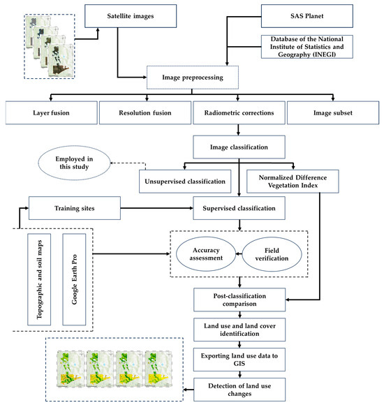 First, high-resolution satellite images are acquired from reliable sources, such as SAS Planet and the database of the National Institute of Statistics and Geography (INEGI). These images form the basis of the analysis, providing essential visual and spatial data for the study.