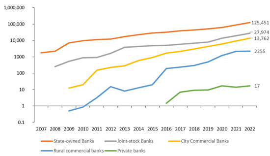- Xie, X.; Wang, S. Digital Transformation of Commercial Banks in China: Measurement, Progress and Impact. China Econ. Q. Int. 2023, 3, 35–45. [Google Scholar] [CrossRef]