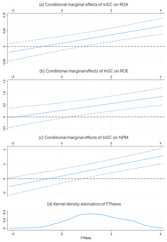 Equation (3) mirrors Equation (1), except that the dependent variable has been replaced by the bank cost indicator . The equation suggests that the marginal cost of green credit is . The derivative of the marginal cost of green credit with respect to FinTech, denoted by , indicates the effect of FinTech on the marginal cost of green credit. According to the Hypothesis H3, if FinTech reduces the costs associated with green credit businesses, then as the level of FinTech increases, the negative impact of green credit on costs will become more significant. Therefore, the coefficient in Equation (3) is expected to be significantly negative.
