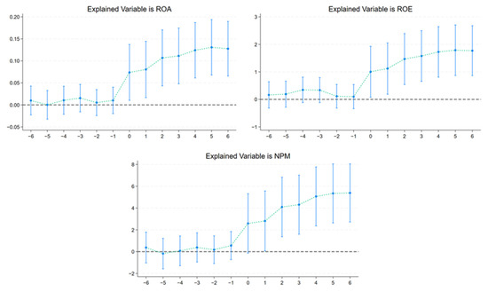 Regarding the mechanism, green credit directly improves banks’ financial performance by aligning their activities with environmental sustainability goals [7]. Yuan and Zeng [46] emphasized that green credit supports China’s green development strategy by enabling banks to benefit from government and central bank subsidies and preferential measures, thus increasing profitability. Fenchel et al. [47] suggested that using the environmental performance of borrowers as an indicator for credit risk is advantageous, as it reduces the effort required during the recovery phase and meets cost-effectiveness criteria. Lian et al. [48] demonstrated that green credit enhances financial performance by raising the return rate on interest-bearing assets. Additionally, Xi et al. [49] argued that green credit improves the financial performance of listed banks through value creation and better systems. By embracing sustainability, banks can not only improve their reputation but also contribute positively to environmental and social causes.