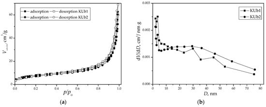 (a) N2 adsorption–desorption isotherms and (b) pore size distributions of KUb1 and KUb2.