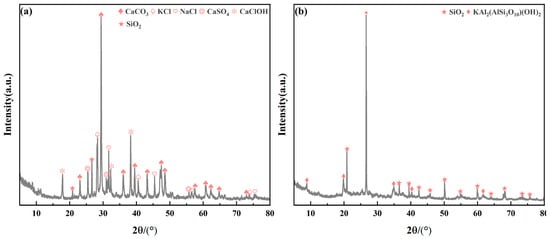 XRD patterns of raw material: (a) MSWI-FA; (b) MS.