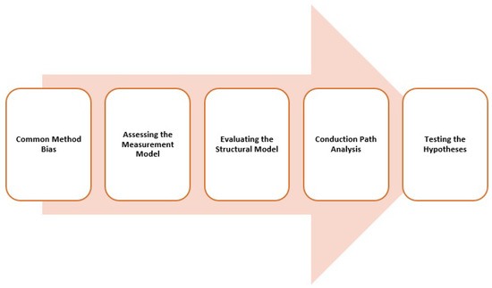 The main steps in the data analysis include addressing common method bias, assessing the measurement model, evaluating the structural model, conducting path analysis, and testing the hypotheses outlined in this section and visualized in Figure 3.