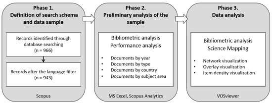 As also suggested in [65,74,75], the reference methodology of this study consists of three main phases: (i) the definition of search schema and data sample; (ii) a preliminary analysis of the sample; and (iii) data analysis. Figure 1 details steps and sub-steps of the methodology.