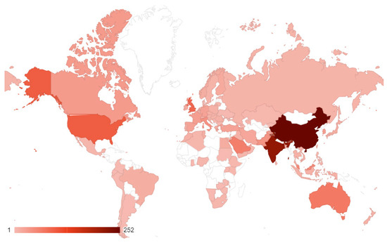 Interest in these fields and their relationship originates from all over the world (Figure 4). In fact, the top five countries that provided such studies are China (252 papers), India (215 papers), the United States (97 papers), the United Kingdom (86 papers), and Australia (68 papers). Italy appears at the eighth position with 42 papers. This view can also be interpreted as the diffusion trend in the interest in many different economies.