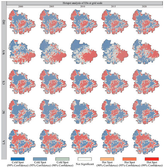 Spatial distribution of cold spot and hot spot of ESs at grid scale.