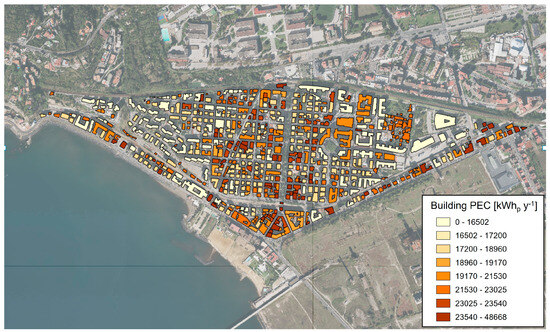The annual impact of the buildings, and therefore of the urban pattern, in terms of primary energy required for their operation, has been achieved. Surely, such values or simplified methods like the one here proposed—for instance, based on the available EPCs for a certain number of buildings, then used to attribute similar performance to close ones—can be used for fast evaluations of average energy demands of districts, even in order to identify priorities, lines of intervention, development of novel energy infrastructure, or local promotion of retrofits of critical neighborhoods, macro-objectives for regional decarbonization. However, these data present a high error margin because it is affected by different conditions and restrictions that have been established.