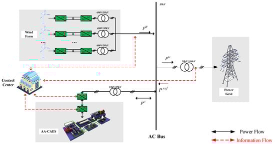 The control center enhances grid security by coordinating wind farms and the charging/discharging of AA-CAES through an integrated source–storage–grid model. AA-CAES undertakes peak shaving and valley filling, ensuring the stable operation of the power system and supplying the grid with reserve energy.