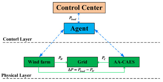 The AA-CAES integrated energy system is represented by the framework illustrated in Figure 1. The control framework of the system uses a hierarchical strategy to coordinate and optimize energy. Based on these instructions from the control center, the wind farm operates in conjunction with AA-CAES. The control strategy builds on DRL, an approach that utilizes models and data to maximize rewards through dynamic interactions between the system and its environment.