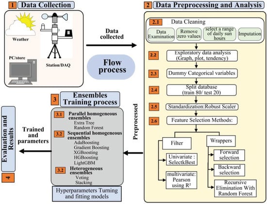 Sketch of the proposed flow process for predicting solar radiation using ensemble learning algorithms.