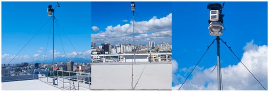 The weather station, model name Vantage Pro2 Plus (Davis Instruments, Hayward, CA, USA), was installed on the roof of the Faculty of Health Sciences and Engineering (FCSI) building of the Pontificia Universidad Católica Madre y Maestra (PUCMM), at a latitude of 18°27′46.59″ N, a longitude of 69°55′47.60″ W and an elevation of 50 m above sea level. The weather station is illustrated in Figure 4.