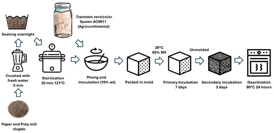 Muñoz, H.; Molina, P.; Urzúa-Parra, I.A.; Vasco, D.A.; Walczak, M.; Rodríguez-Grau, G.; Chateau, F.; Sancy, M. Applicability of Paper and Pulp Industry Waste for Manufacturing Mycelium-Based Materials for Thermoacoustic Insulation. Sustainability 2024, 16, 8034. https://doi.org/10.3390/su16188034