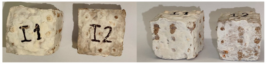 The biomaterials were manufactured by mixing 10 wt.% of Trametes versicolor with 90% of the substrate, which had been sterilized in an autoclave using molds. The molds were filled layer by layer, compressing and filling to achieve a 1.015 g/cm³ density. The prismatic molds used were 160 × 40 × 40 mm, designed in 3D using Thinkercad (http://www.tinkercad.com, accessed on 27 August 2024), and printed in PLA (Creality Ender-3 V2, eSUN 1.75 mm). They featured easy-release mechanisms and holes to facilitate gas exchange between the substrate and the atmosphere.