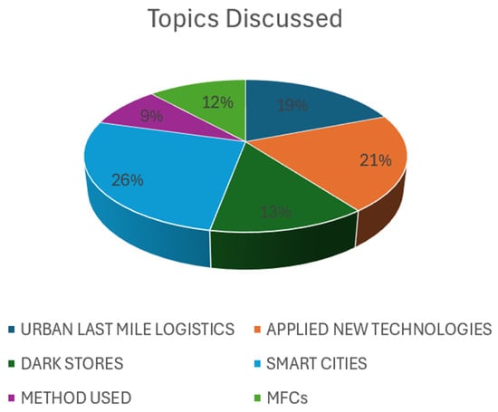 What we can also see from both Table 2 and Figure 2, is that the articles that were finally chosen were related to five main domains/topics/themes, namely “smart cities”, “urban last-mile logistics”, “new technologies”, “dark stores” and “micro-fulfilment centers”. These five main domains/topics/themes were the ones identified by the author of this research, and, in the end, their synthesis was the one that gave us the answer to the research questions.
